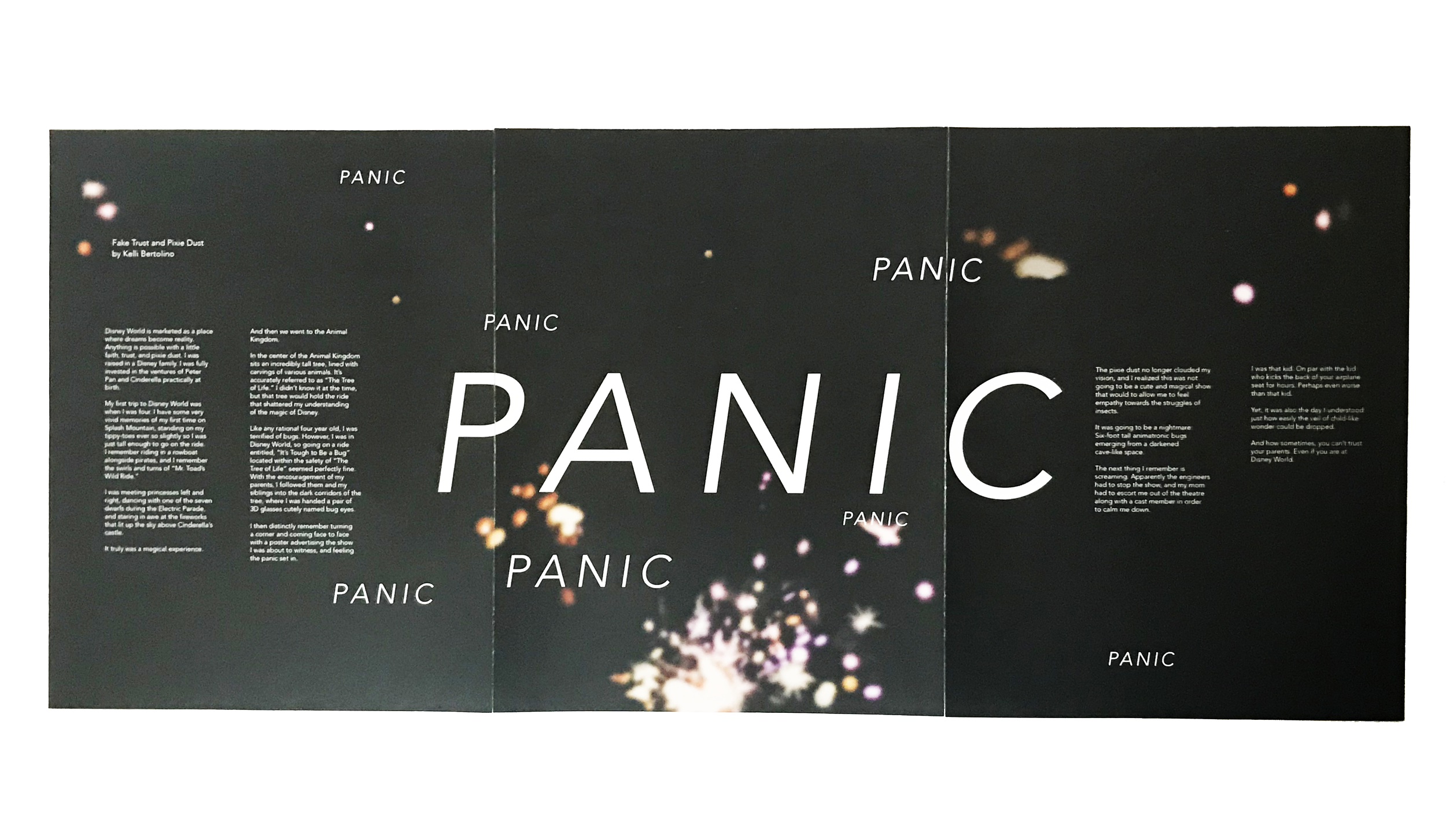 A series of layouts designed around a personal, less than stellar experience at Disney World as a child, involving the “A Bug’s Life” ride. The design captures the various feelings of childhood misunderstanding, panic, and fear.